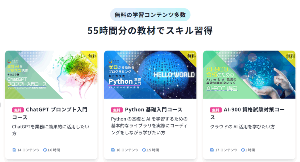 例えば、Aidemy(528,000円)やDMM WEBCAMPのAIコース(169,800円)などがありますが、実質負担で見ると、キカガクが優位に立つケースも多いです。